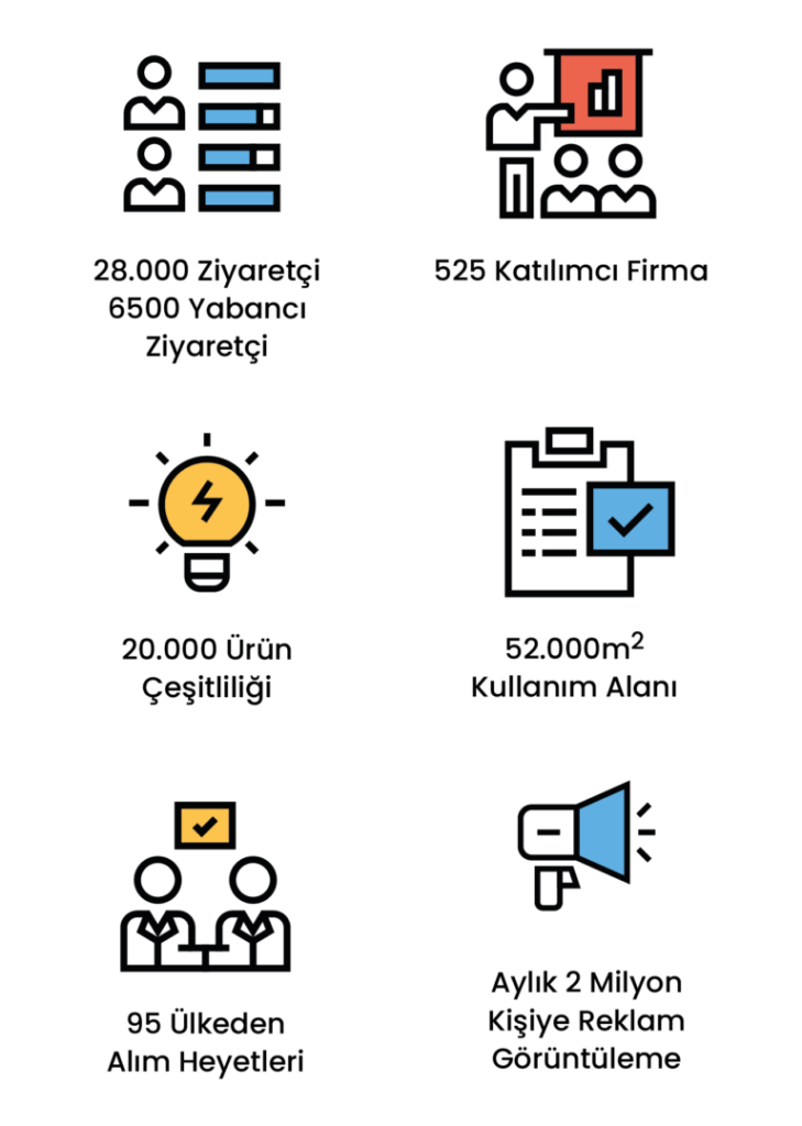 Fuarımıza katılarak, işletmenizin büyümesine ve yeni ticaret bağlantıları kurmasına olanak tanıyacak birçok avantajdan faydalanabilirsiniz.
